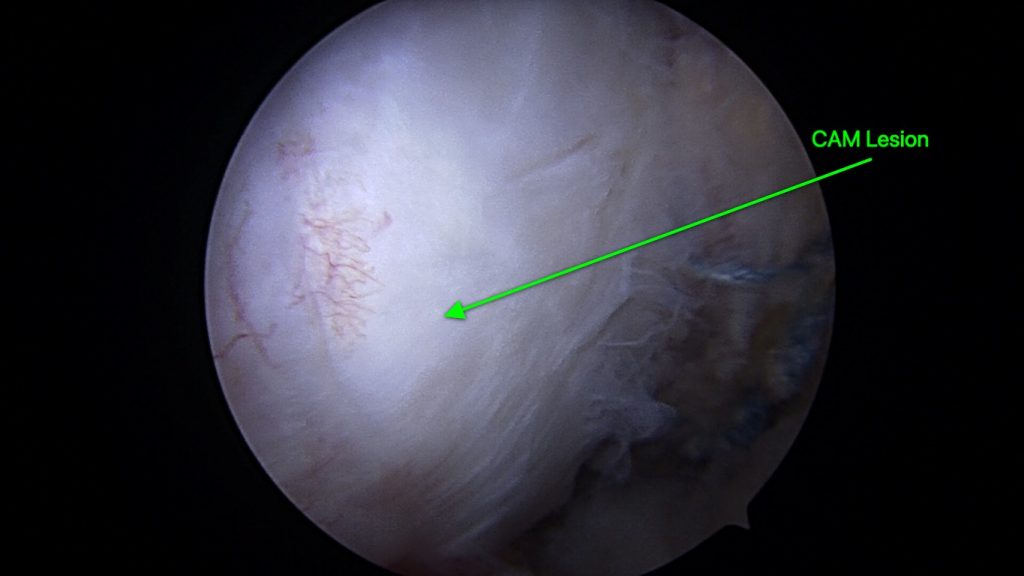 Hip arthroscopy is usually chosen for patients with acetabular labral tears or bony abnormalities within the hip joint. The labrum is a piece of cartilage that goes around the acetabulum (cup) of the hip. There are two common bony abnormalities which can cause labral tearing. These are a pincer deformity and a CAM lesion. If either of these two issues are present, the patient is at risk of a condition called femoral acetabular impingement (FAI), resulting in a labral tear. Often, a patient will have both a pincer and a CAM lesion.